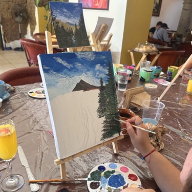 Durante estas sesiones, los asistentes pueden disfrutar de un delicioso desayuno con chilaquiles, café ilimitado y mimosas, mientras crean una obra de arte desde cero con asesoría personalizada en todo momento.